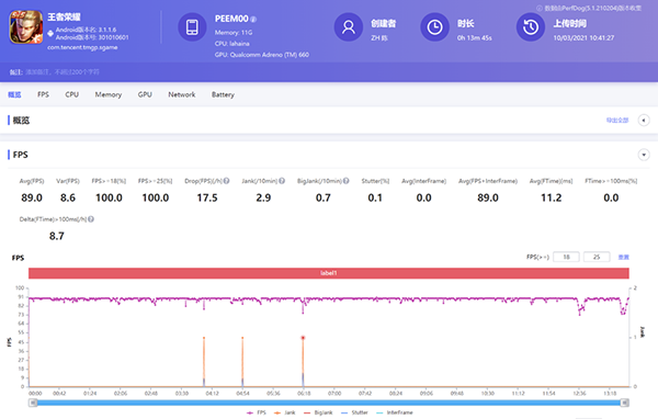 Find X3系列最新適配了《王者榮耀》的90幀模式,在最高畫(huà)質(zhì)+90幀的測(cè)試中,F(xiàn)ind X3 Pro幾乎保持了全程滿幀運(yùn)行,機(jī)身溫度最高41.8°C,有一定溫感。