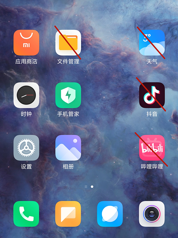 MIUI12.5還有一個非常好的點,就是可以卸載/隱藏系統(tǒng)應用,最多桌面可以只剩下9個圖標!
