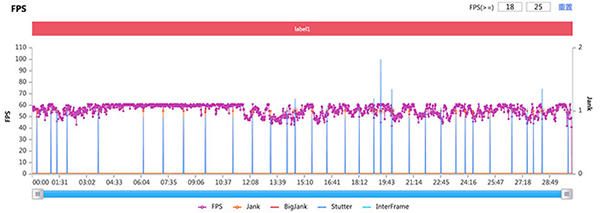 首先是《灌籃高手正版手游》,在20℃的室內(nèi)進行游戲,屏幕亮度和外放音量均為50%,關(guān)閉自動亮度調(diào)節(jié),幀率設(shè)為極高,分辨率超高,畫面質(zhì)量為極致。由于該款手游是在比賽進行中才會動態(tài)調(diào)整到最高幀率,所以我們共計對三局比賽進行性能監(jiān)測,取幀率中間值數(shù)據(jù)的一局作為參考。