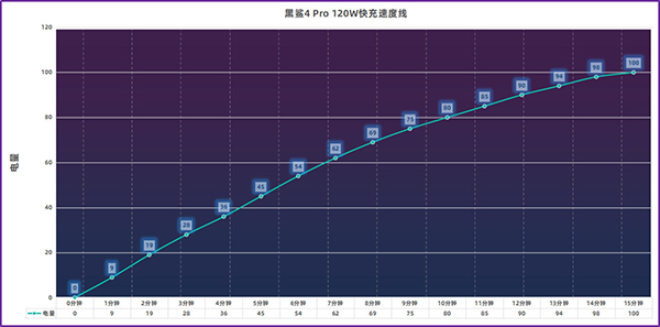 充電速度上黑鯊4 Pro的120W快充真不是開(kāi)玩笑的,從數(shù)據(jù)上黑鯊4 Pro只需1分鐘就能充入9%的電量,5分鐘可以充入45的電量,6分鐘充電已經(jīng)高達(dá)54%,而10分鐘時(shí)間黑鯊4 Pro就已經(jīng)把4500mAh電池充滿(mǎn)到80%,短短的14分鐘42秒就能完成充滿(mǎn)100%,在充電的環(huán)節(jié)中,黑鯊4 Pro快充充電階段都維持112W以上的功率,后期緩流充電階段也有66W左右。對(duì)此這充電速度不經(jīng)感嘆,我們洗個(gè)澡、刷個(gè)牙、開(kāi)局等一下隊(duì)友黑鯊4 Pro就已經(jīng)充滿(mǎn)了,這也120W閃充實(shí)在太快了。