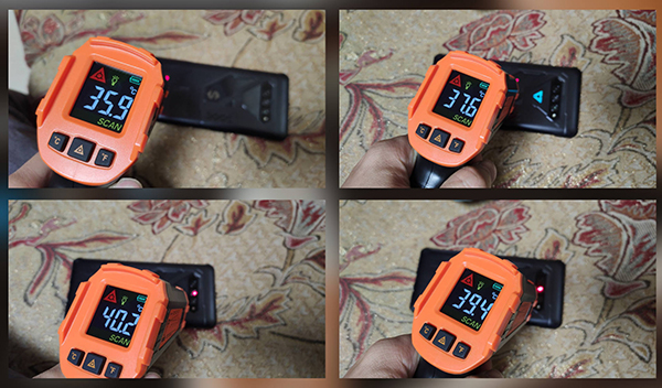 在2小時的游戲體驗后我大概測試了黑鯊4 Pro表面溫度,值得注意的是,我還是戴著保護殼玩游戲的哦!經(jīng)過測試和體感測試后,主要發(fā)熱的地方還是攝像頭附近,最高溫度40.5℃,而處于機身邊緣的位置黑鯊4 Pro溫度較低最低34.8℃。其他地方維持在35.9℃~39.4℃以內,整體溫度表現(xiàn)還算不錯!