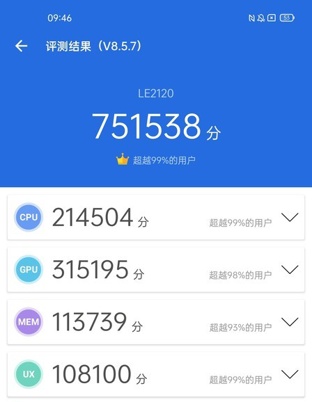 在安兔兔跑分中,一加9 Pro跑分高達(dá)751538分,這個(gè)分?jǐn)?shù)水平在同類產(chǎn)品中已是比較拔尖的存在。