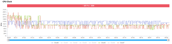 而一加9 Pro在《原神》游戲開始1分鐘后,超大核和大核就直接消極怠工,只有小核滿載工作,這樣調(diào)度下出現(xiàn)卡頓自然也是理所當(dāng)然。