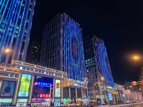 從實(shí)際的樣張表現(xiàn)來(lái)看,OnePlus 9Pro的夜景模式并沒有執(zhí)著于拉高亮度,而是在保證亮度的基礎(chǔ)上盡可能還原了被拍攝物體真實(shí)的顏色效果,值得注意的是,得益于IMX766主攝級(jí)鏡頭,我們?cè)趶V角模式下也能進(jìn)行夜景實(shí)拍,通過樣張可見在廣角模式下,畫面中也沒有出現(xiàn)炫光、過曝等問題,對(duì)當(dāng)時(shí)的夜景畫面有著很好的還原,輸出的圖片質(zhì)感很強(qiáng)。