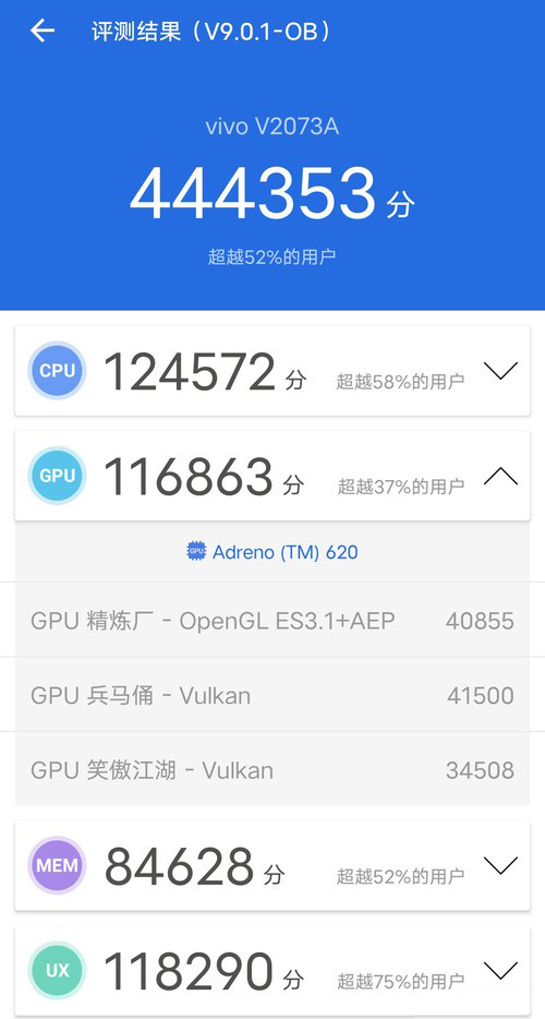 至于綜合性的安兔兔V9.0.1測(cè)試中,iQOO Z3總分44.4W+,其中CPU得分12.4W+,GPU得分11.6W+。