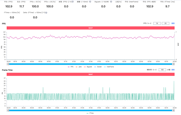 這里挑選了我平時比較喜歡玩的《QQ飛車》來進行測試。iQOO Z3雖然沒有達到滿幀,但是平均102.9的幀率表現(xiàn)也非常不錯,在對戰(zhàn)當(dāng)中可以明顯地看到畫面的流暢度提升。