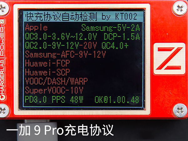 經(jīng)過(guò)我們實(shí)際測(cè)試,除FlashCharge外,65W Warp閃充除了Warp協(xié)議,還支持Samsung 5V/2A、QC3.0 12V、QC2.0 12V、DCP 1.5A、QC4.0+、PD3.0、PPS 48W等協(xié)議,充電器線材重量與便攜性尚可。得益于PD3.0協(xié)議以及PPS協(xié)議的支持,用戶可以使用65W Warp閃充為MacBook、Nintendo Switch、iPad Pro等設(shè)備充電。