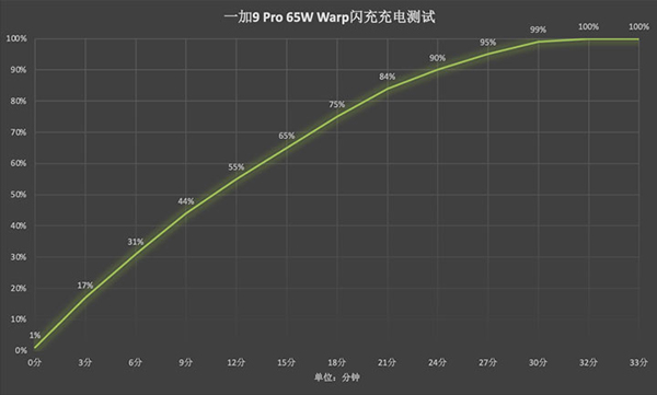 充電時(shí)間方面,一加9 Pro在息屏情況下耗時(shí)32分鐘從1%充到了100%,第33分鐘完全充滿。