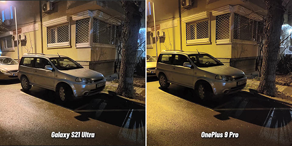 第五組照片依然是夜景拍照,三星S21 Ultra和一加9 Pro之間已經(jīng)不光是光線明暗程度的區(qū)別,而是對(duì)于照片的效果方面表現(xiàn)有著明顯的區(qū)別。一加9 Pro拍攝的照片中,無論是墻壁還是地面的顏色,均有些偏黃色。三星S21 Ultra拍攝的照片中,墻壁和地面均是偏灰色多一些,至少?zèng)]有一加9 Pro表現(xiàn)得那么黃。