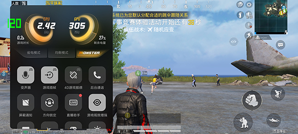 開啟的方法也非常的簡單,進入游戲后,只需要從屏幕左邊向內一劃呼出「游戲魔盒」就可以找到游戲插幀,在里面可以看到有90和120幀的兩個選項。