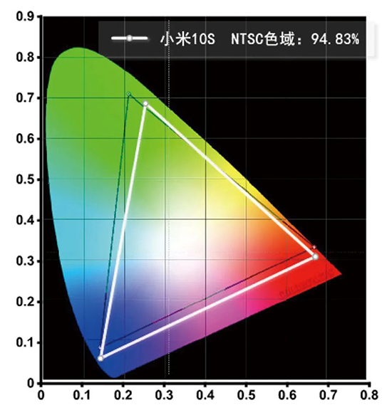 色彩表現(xiàn)方面,我特意使用柯尼卡美能達(dá)CS-200色彩亮度計(jì)對這塊屏幕色域進(jìn)行測試,自適應(yīng)模式下小米10S的屏幕覆蓋了94.83%的NTSC色域,能夠呈現(xiàn)繽紛鮮艷的色彩。調(diào)至覆蓋102.6% NTSC色域的鮮艷模式后,屏幕色彩進(jìn)一步增強(qiáng)。當(dāng)然,喜歡真實(shí)色彩風(fēng)格的用戶,也可以切換成覆蓋72.3% NTSC色域的原色模式。