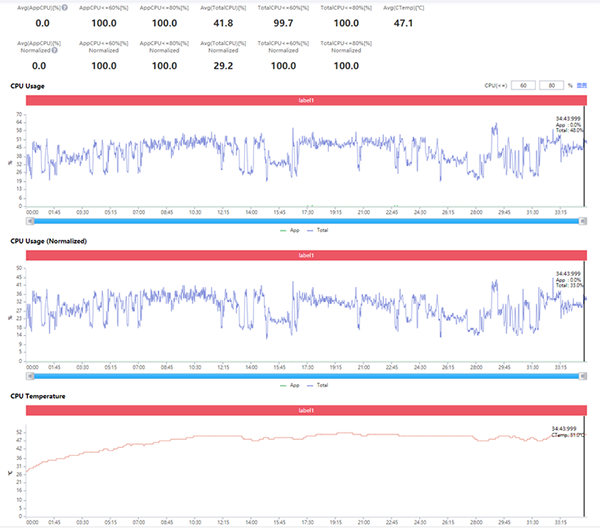 30分鐘測試完成后可以看到平均幀率保持在52左右。CPU溫度最高僅有51度,加上出色的散熱配置,手機(jī)握持狀態(tài)下是不會有明顯熱量感受的。