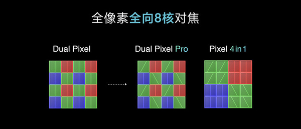 我們知道,在傳統(tǒng)的PDAF相位對焦中,當環(huán)境光線下降時手機的對焦性能就會下降。主流手機采用的2PD全像素雙核對焦在橫向紋理極端場景中是不容易對焦的。小米11 Ultra首發(fā)采用了全像素全向8核對焦功能,將每個感光像素豎向分割為兩個二極管,每個像素都進行雙目對焦,通過進一步將綠色像素分割為斜向,打到全像素全向八核對焦,增加了對多向紋理的對焦能力,大大提升了對焦性能。此外小米11 Ultra首次采用了多點ToF對焦系統(tǒng),通過最多64點測距實現(xiàn)更大范圍的61度精準對焦。