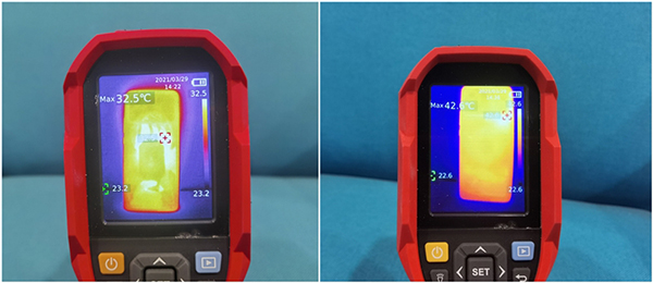 測(cè)試前機(jī)身最高溫度為32.5℃,測(cè)試后升至42.6℃