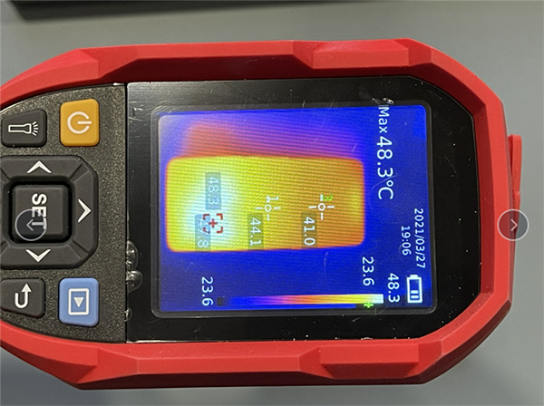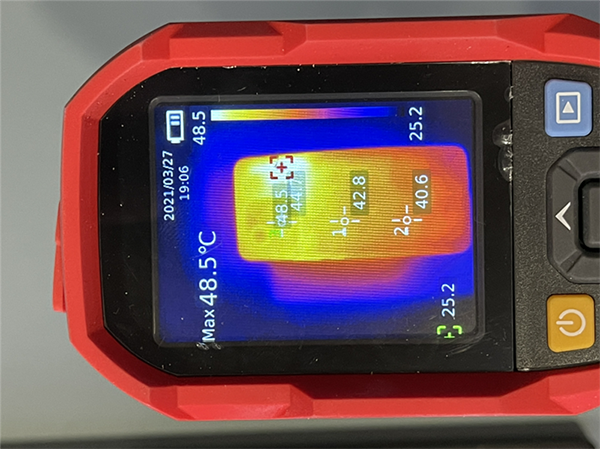 在三輪連續(xù)測(cè)試后,我們也看了下手機(jī)背面的發(fā)熱情況。優(yōu)秀的散熱就是要將熱量及時(shí)的導(dǎo)出,因此背面的溫度也可想而知。最熱的部分集中在上半?yún)^(qū),無(wú)論是正面還是背面溫度都達(dá)到了48℃左右。