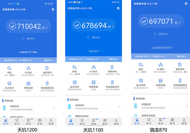 從制程工藝到架構(gòu)設(shè)計(jì)以及功能特性來看,天璣1200本身的性能和對(duì)于手機(jī)整體體驗(yàn)的提升還是非常出色的。實(shí)際的跑分也證明了這個(gè)事實(shí),最新的安兔兔V9版本跑分達(dá)到71萬+,比天璣1100高出了4萬分左右,比驍龍870也高出了2萬分左右。