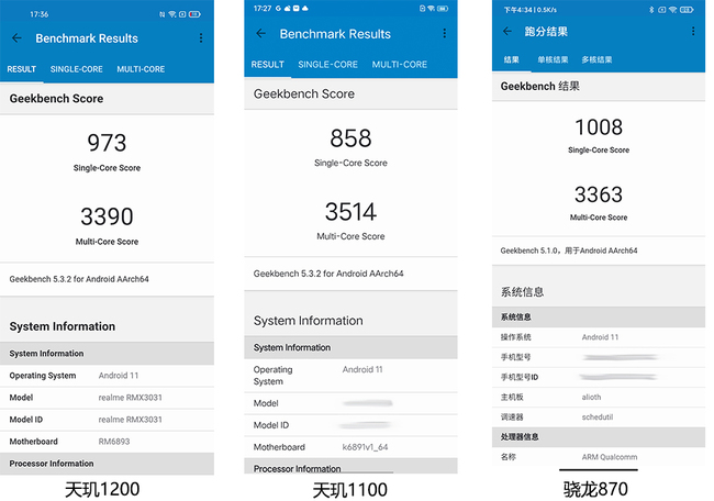 此外,其單核成績(jī)973分,多核成績(jī)3390分;對(duì)比天璣1100單核成績(jī)858分,多核3514分;驍龍870單核1008分,多核3363分??梢钥闯?,天璣1200的單核成績(jī)領(lǐng)先天璣1100,基本與驍龍870持平,多核成績(jī)稍遜天璣1100,同樣與驍龍870持平。