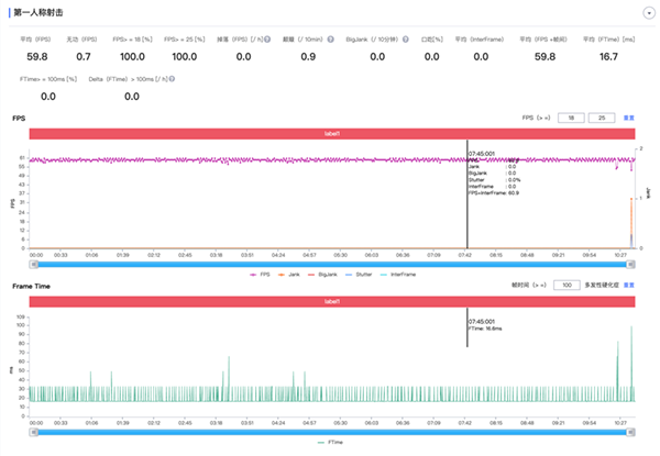 切換到性能更為苛刻的《和平精英》,60幀最高幀率模式下,realme GT Neo表現(xiàn)則更為穩(wěn)定。游戲全程幀率為59.8,而且整體的幀率波動(dòng)曲線都非常平穩(wěn)。