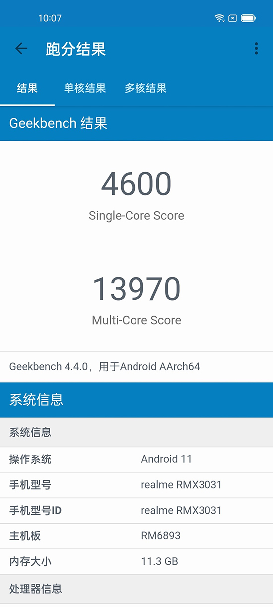 實(shí)際的性能表現(xiàn)上,使用Geekbench進(jìn)行跑分,最終單核4600分,多核13970分,這組分?jǐn)?shù)于高通驍龍870的得分非常接近。