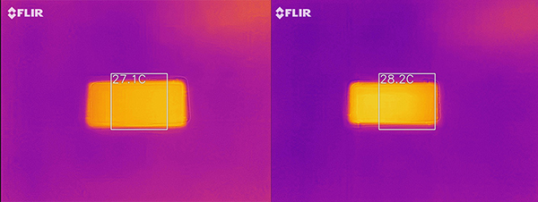 高強(qiáng)度的持續(xù)運(yùn)行不可避免地會(huì)讓智能手機(jī)機(jī)身發(fā)燙,不過這對realme真我GT Neo來說不是大事,其配置有3D鋼化液冷散熱系統(tǒng),借助內(nèi)部的鋼銅復(fù)合內(nèi)部結(jié)構(gòu)、可優(yōu)化內(nèi)部毛細(xì)結(jié)構(gòu)等一系列出色設(shè)計(jì),能夠?qū)PU核心最高降溫15℃,相比上一代機(jī)型X7 Pro的10℃效果提升了50%。可以看到游戲前后機(jī)身溫度分別為27.1℃和28.2℃,出色的散熱效果能夠輕松應(yīng)對各種游戲大作的挑戰(zhàn)。
