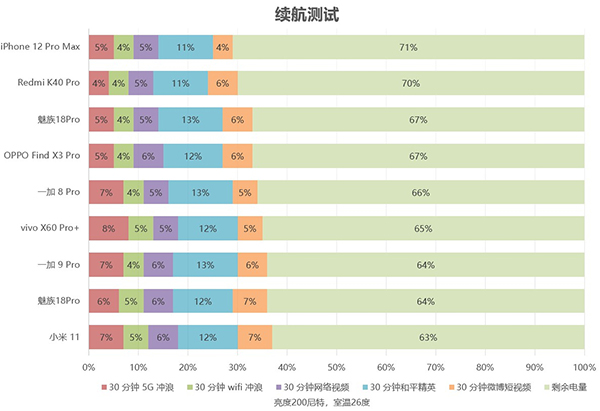 在這個(gè)電池方面,一加9 Pro搭載4500mAh雙電芯,經(jīng)過(guò)30分鐘《和平精英》、30分鐘B站1080P視頻播放、30分鐘微博短視頻、各30分鐘的Wi-Fii和5G沖浪,共2.5小時(shí)的續(xù)航測(cè)試后,剩余電量64%。