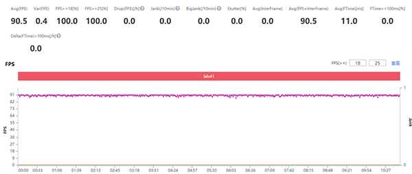在小米11 Ultra上體驗《王者榮耀》十分鐘左右,整體表現(xiàn)較為流暢,游戲后半程大規(guī)模團戰(zhàn)基本沒什么波動,游戲過程中也沒有卡頓等糟糕情況出現(xiàn),且平均幀率達到了90.5FPS。此外,小米11 Ultra機身溫度沒有升高,比室內(nèi)溫度偏高一點。