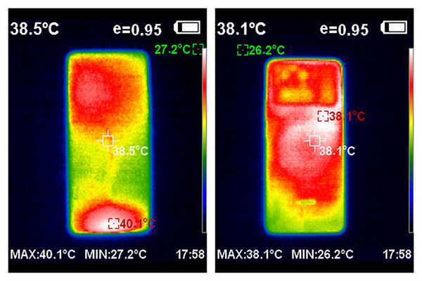 在游戲測試結(jié)束后,測試了下小米11 Ultra的機身溫度,最高溫度為38.5℃,背面最高溫度為38.1℃??磥硇滦拖嘧儗?dǎo)熱材料還是蠻厲害的,配合2000m㎡大VC,以及最合適的 AI 溫控模型起到了不錯的勻熱散熱效果,溫度的表現(xiàn)還是令人滿意的。