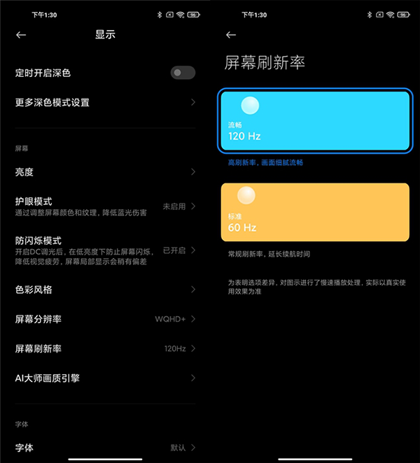 小米11 Pro支持120H屏幕刷新率,同時(shí)支持2K+120Hz同開(kāi),屏幕顯示更加流暢。同時(shí)手機(jī)支持480Hz觸控采樣率,在視頻播放、網(wǎng)頁(yè)瀏覽和游戲場(chǎng)景中,可以獲得更好的跟手性與順滑感。