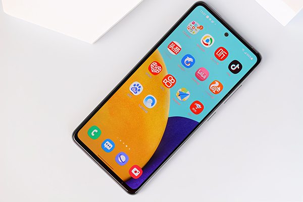 三星Galaxy A52 5G的外觀設(shè)計(jì)上在很多方面都沿用了自家旗艦的身影,一眼看上去就很具有三星的產(chǎn)品風(fēng)格。屏幕方面更是采用了自家最優(yōu)的Super AMOLED配置,和現(xiàn)在的S系列旗艦產(chǎn)品一樣都采用了頂部中間挖孔的設(shè)計(jì)方式。