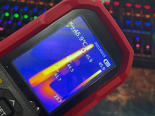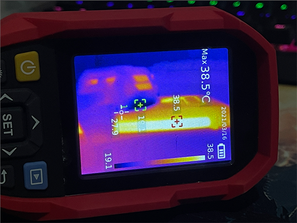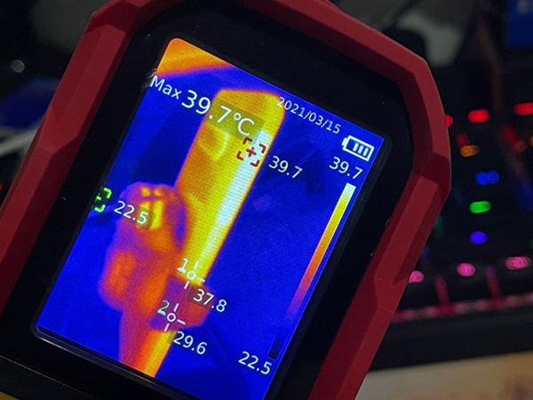 使用散熱背夾直接覆蓋發(fā)熱點(diǎn),降溫效果顯著。最高溫度才39.3℃,體感上僅僅是微微發(fā)熱而已,不必?fù)?dān)心游戲時(shí)左手還要忍受高溫的炙烤。