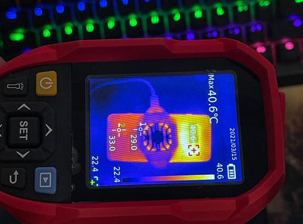 如果想要將散熱背夾放置到正中區(qū)域,雖然也會(huì)起到一定的降溫效果,但是左手區(qū)的溫度會(huì)更高,很快就能夠達(dá)到40.6℃,后面還會(huì)進(jìn)一步升高。