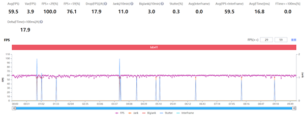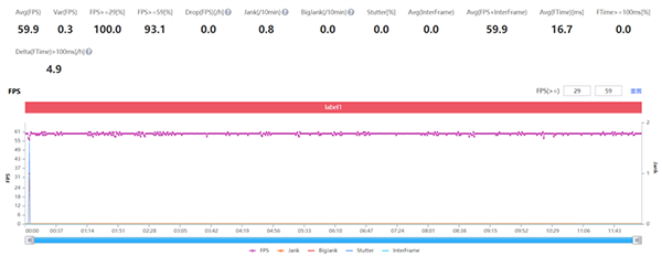 《和平精英》游戲中并沒有超流暢的90幀模式選項,因此只能在60幀模式下運行。平均幀率59.9FPS,這個畫面設置對于驍龍865的性能來說都綽綽有余,對于驍龍888來說自然不是問題。