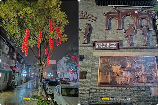 而在夜拍方面,支持新一代PureRaw夜景算法,AI自動去壞點(diǎn),AI降噪,暗光畫面細(xì)節(jié)表現(xiàn)力再次提升。這點(diǎn)可以從實(shí)際拍攝的樣張感受到。在夜間場景下,realme GT Neo的拍攝成像速度很快,拍的的照片細(xì)節(jié)到位,線條清晰,噪點(diǎn)能夠得到有效控制。