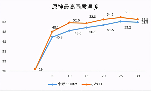 小米11 Ultra首次采用“全相變”散熱技術(shù),可實現(xiàn)一次散熱,固液氣三態(tài)變化,雷總在發(fā)布會上表示該技術(shù)散熱效果可以讓小米11 Ultra媲美友商游戲手機,果真如此嗎?由于沒有別家游戲手機,這里就和小米11作對比。原神最高畫質(zhì),小米11 Ultra平均幀率54.2,略低于小米11的56.2,但是機身溫度最高相差4度,半小時后相差1.5度。原神半小時功耗,小米11 Ultra為6.45W,小米11為6.72W,相差不大。