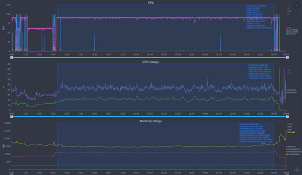 在《王者榮耀》測試中,幀率調(diào)至90Hz,畫質(zhì)最高,開啟HDR,游戲20分鐘平均幀率基本維持90Hz,整體運(yùn)行流暢,團(tuán)戰(zhàn)也沒有出現(xiàn)掉幀。在開啟雙風(fēng)扇后,機(jī)身溫度控制也比較好,沒有出現(xiàn)燙手情況,總體表現(xiàn)出色。