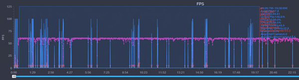 不過,在《原神》面前,紅魔6的表現(xiàn)中規(guī)中矩。在幀率60Hz,其他畫面設(shè)置均最高的情況下,運(yùn)行游戲20分鐘平均幀率為57.8Hz,波動并不大,打斗中也無掉幀現(xiàn)象出現(xiàn)。在一眾驍龍888旗艦測試翻車實(shí)例中,紅魔6的表現(xiàn)可以說是十分不錯。但是游戲過程中手機(jī)頂部CPU區(qū)域發(fā)熱嚴(yán)重,一度飆升至55°C,非常燙手,左手完全握持基本不可能,需要空出發(fā)熱部分才能長期握持。不過,嚴(yán)重的發(fā)熱并沒有帶來降頻、掉幀,可以說性能釋放不錯。