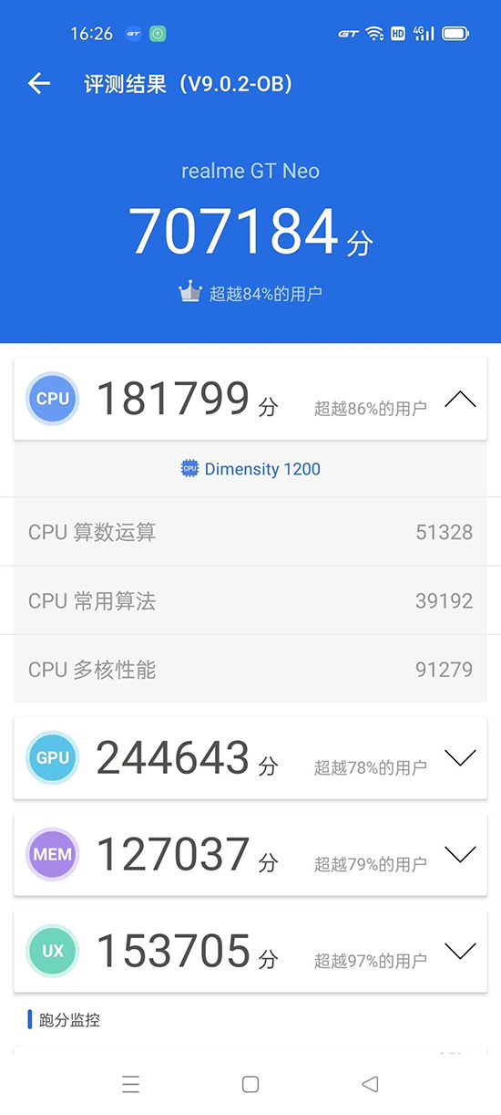 在5G時(shí)代,聯(lián)發(fā)科憑借著多價(jià)位、多產(chǎn)品的密集布局成功超車,旗下的天璣1000系列曾給我們帶來不錯(cuò)的體驗(yàn)。今年,聯(lián)發(fā)科再次發(fā)力旗艦領(lǐng)域,基于臺積電6nm制程工藝的天璣1200就是其拳頭產(chǎn)品,realme真我GT Neo成為其首發(fā)機(jī)型。它的CPU部分采用“1+3+4”的三叢集架構(gòu),包括1顆主頻3.0GHz的Cortex-A78大核、3顆主頻2.6GHz的Cortex-A78中核以及4顆Cortex-A55小核,GPU則采用九核Mali-G77,同時(shí)還集成了六核MediaTek APU 3.0。此外,真我GT系列獨(dú)有的GT模式也得到了繼承,在系統(tǒng)下拉菜單欄中一鍵開啟GT模式后,realme真我GT Neo將提高核心運(yùn)行頻率,全面開放120Hz屏幕刷新率。