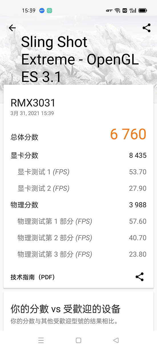 開啟GT模式后,它在3DMark的Sling Shot Extreme場景里獲得6760分,較普通模式提升3.71%。
