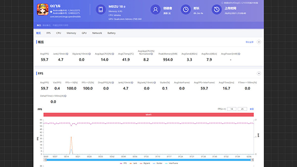而在國(guó)民手游QQ飛車(chē)中,畫(huà)面的運(yùn)動(dòng)感表現(xiàn)的淋漓盡致,車(chē)子移動(dòng)時(shí)畫(huà)面中景物向后移動(dòng)的動(dòng)畫(huà)流暢平順,加之這塊2K+分辨率屏幕的細(xì)膩觀感,也讓這款對(duì)配置要求不高的手游有了更精致的視覺(jué)體驗(yàn)。照例附上幀率測(cè)試數(shù)據(jù),平均保持在59.7Fps,起到120Hz的適配。