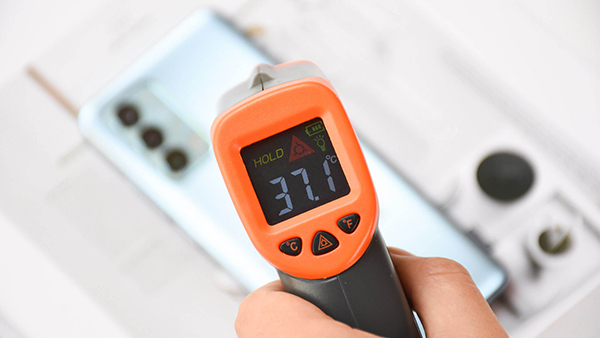 大約玩30分鐘游戲之后,機(jī)身背部發(fā)熱區(qū)域集中在攝像頭右側(cè)的位置,使用溫槍測(cè)試為37.1攝氏度,手感也是溫溫?zé)岬臉幼?,出色的溫控要?dú)w功于魅族18搭載的VC液冷散熱模塊。