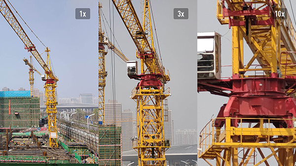 長焦鏡頭支持最高3倍的光學(xué)變焦和30倍的數(shù)碼變焦,上圖分別是主攝、長焦3倍和長焦10倍拍攝的樣張,不難發(fā)現(xiàn)在3倍光學(xué)變焦時(shí)候照片的解析力還是非常不錯(cuò)的,而到了10倍數(shù)碼變焦,邊緣處已經(jīng)有了明顯的涂抹。另外觀察天空部分,主攝和長焦鏡頭的成像風(fēng)格略有偏差。