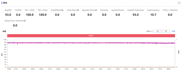 首先是最近進(jìn)行了大版本更新的《王者榮耀》,拯救者電競(jìng)手機(jī)2 Pro已經(jīng)適配了《王者榮耀》的90幀模式,在30分鐘的游玩中,沒有發(fā)生一次卡頓,甚至幀率比90幀還高,最終平均幀高達(dá)93幀,游戲體驗(yàn)極佳。得益于主動(dòng)散熱系統(tǒng)的引入,背部最熱處只有38℃。