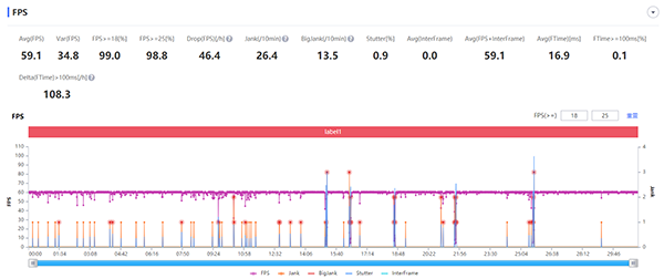 為了讓大家對于它的整體散熱能力有一個比較直觀的了解,我們也用《原神》做了測試。從以下數(shù)據(jù)圖表中可以看到,手動設(shè)置60幀、持續(xù)玩30分鐘游戲條件下,拯救者電競手機2 Pro的平均幀數(shù)為59.1幀,并且?guī)瑪?shù)波動非常小,游戲過程中沒有出現(xiàn)卡頓的情況。
