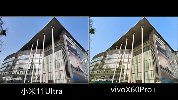 第二組照片依然是將建筑物作為被拍攝的主體,同時拍攝環(huán)境也是在白天,小米11 Ultra和vivo X60 Pro+之間的區(qū)別,兩者之間的區(qū)別還是十分明顯的。小米11 Ultra拍攝的照片中,建筑物外表面的色彩是有一些些偏藍色的,vivo X60 Pro+拍攝的照片中的建筑物,外表面則是有一些些偏灰色的。除了建筑物之外,小米11 Ultra拍攝的照片中天空的色彩也是偏藍色的,vivo X60 Pro+拍攝的天空也是偏灰色的。
