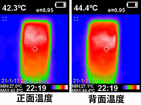 實際測試下,在半小時的超高負(fù)荷游戲后,小米11 Ultra正面溫度為42.3°C,背面溫度為44.4°C,稍微有些燙手,但相比小米11(背面48.9°C)來說已經(jīng)有了明顯的進(jìn)步。
