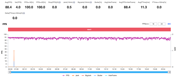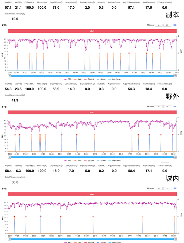 在連續(xù)半小時(shí)的幀率測(cè)試當(dāng)中,小米11 Pro在副本、野外和城內(nèi)的平均幀率分別為57.1、54.3和58.4,整體來(lái)說(shuō)屬于較高的檔位。