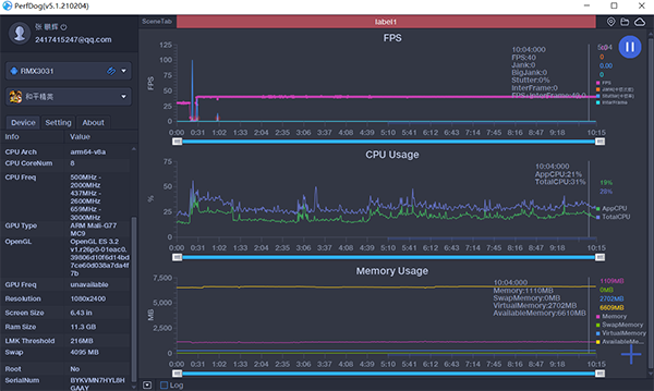 在開啟最高畫質(zhì)以及幀率的前提條件下,運(yùn)行當(dāng)下流行的《王者榮耀》、《和平精英》等大型手游時(shí),整體的幀率表現(xiàn)還是相當(dāng)可以,猶如一條平整的直線,《王者榮耀》幀率保持在90幀左右,《和平精英》幀率保持在40幀左右,并未出現(xiàn)明顯的掉幀等情況。