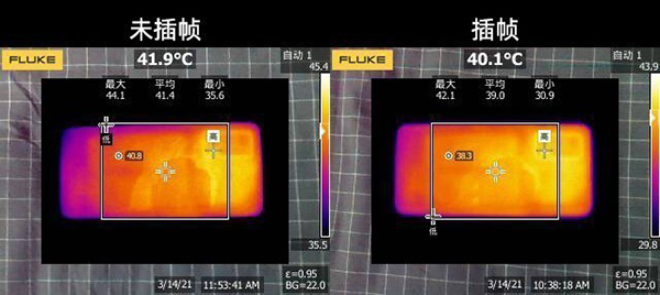 實測1小時《使命召喚手游》,相比于不插幀模式,開啟插幀讓手機背部最高溫度降低了2℃,最低溫度降低了4.7℃,平均溫度降低了2.4℃??梢?,以獨立顯示芯片為基礎帶來的功能調教,確實能夠優(yōu)化游戲功耗表現(xiàn)。