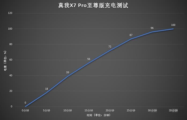 我們將從電量0%開始充電直至充電至100%,并將不同時間點的電量記錄繪制成充電曲線,每個時間點間隔為5分鐘。充電條件是:使用手機原裝的超級快充頭和數(shù)據(jù)線在息屏狀態(tài)下進行充電。