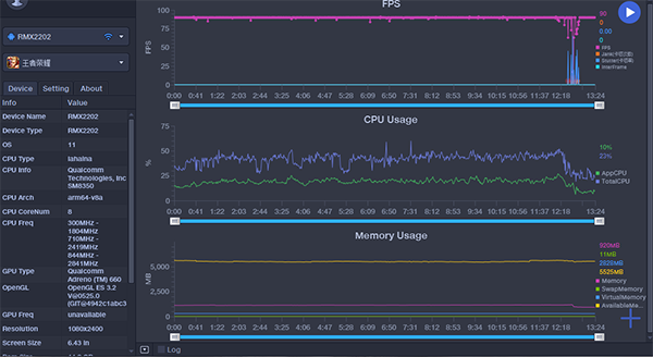那么在如此優(yōu)秀的跑分成績(jī)前提下,realme真我GT實(shí)際玩起游戲來(lái)是一種怎樣的體驗(yàn)?我用《和平精英》與《王者榮耀》兩款熱門手游對(duì)這款旗艦進(jìn)行了測(cè)試。測(cè)試的過(guò)程中我分別開(kāi)啟了HDR高清與極限模式,從幀率圖中可以看到《和平精英》的幀率始終穩(wěn)定在60fps的水平,而《王者榮耀》同樣穩(wěn)定在90fps左右,由此可見(jiàn)用realme真我GT玩游戲,基本上整個(gè)過(guò)程相當(dāng)流暢,沒(méi)有任何卡頓或延遲的現(xiàn)象發(fā)生,不愧是頂級(jí)旗艦。